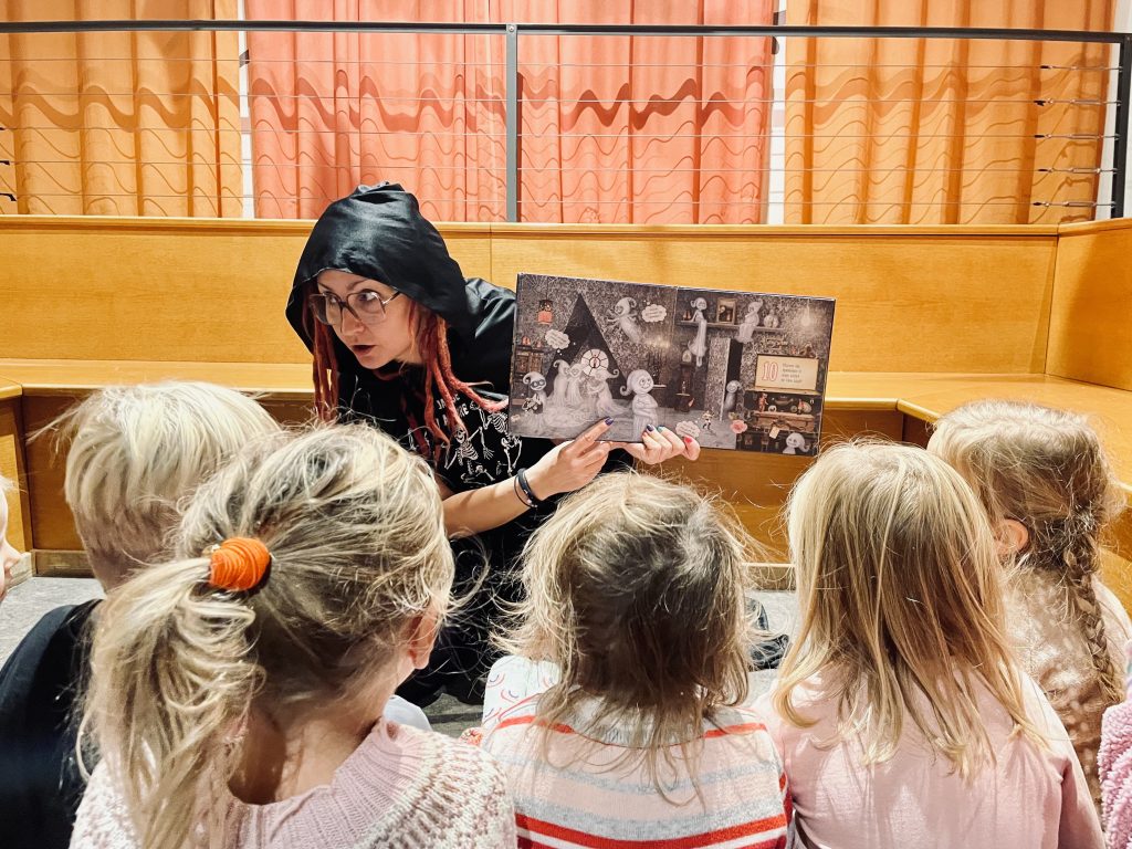 Fortellerstundene er også åpne for deg som er hjemme med barnet ditt. Vi er flere formidlere som leser for barna, og målet vårt er å skape leselyst og leseglede gjennom våre møter med barn og voksne.