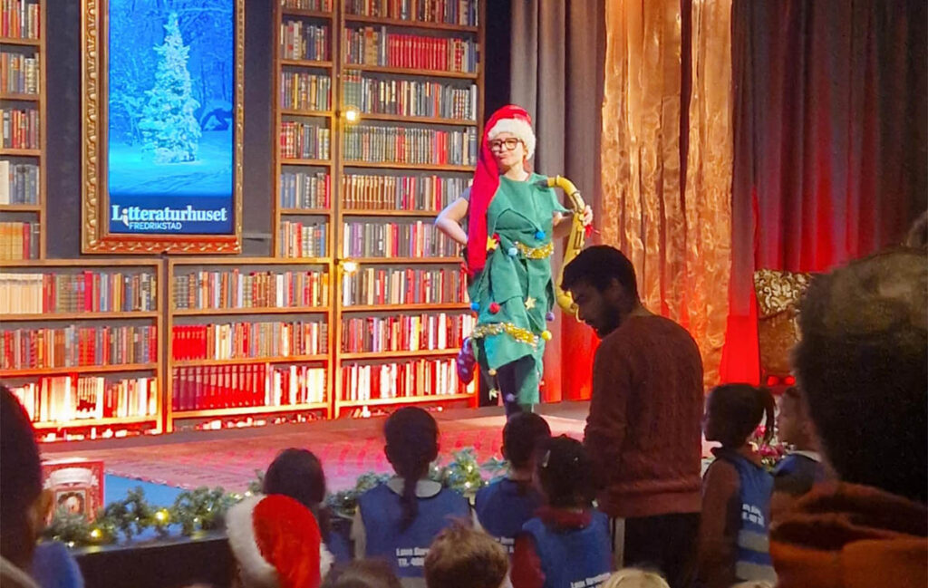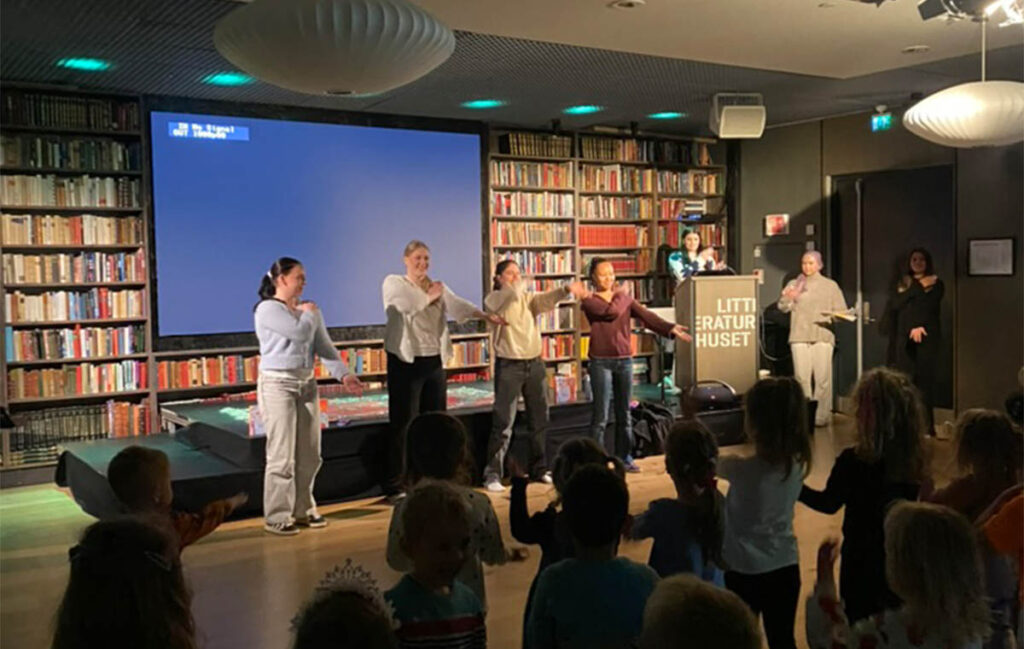 Vi holder fortellerstunder flere ganger i uka på bibliotekene, Litteraturhuset, samfunnshus, byfergene og i barnehager.